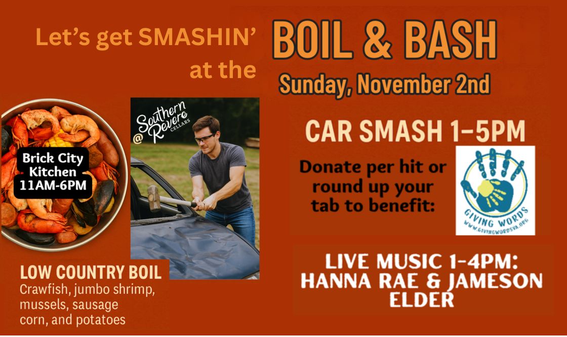 Join us on Sunday, November 2nd at Southern Revere Cellars for a special fundraiser supporting local non-profit Giving Words (givingwordsva.org).